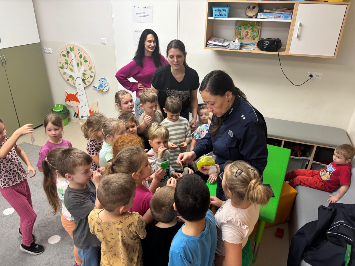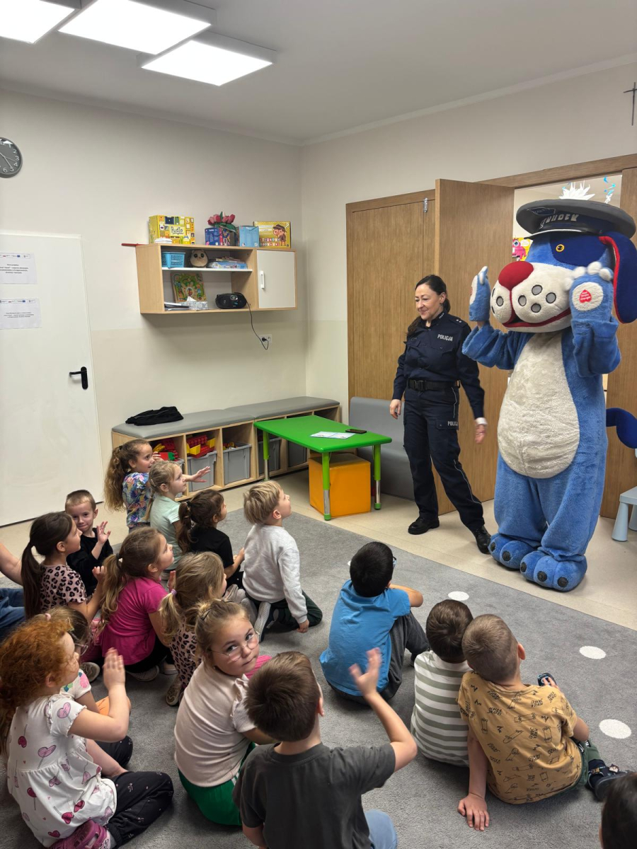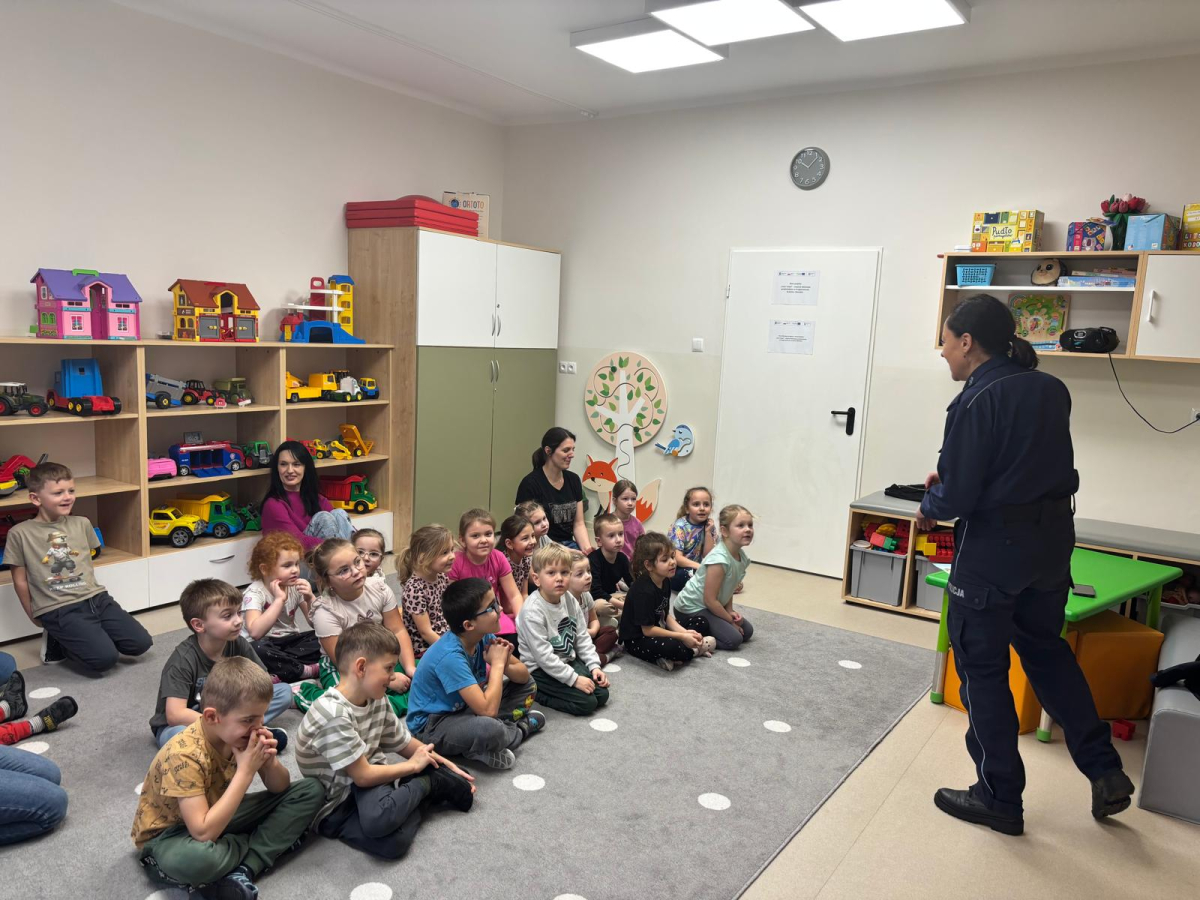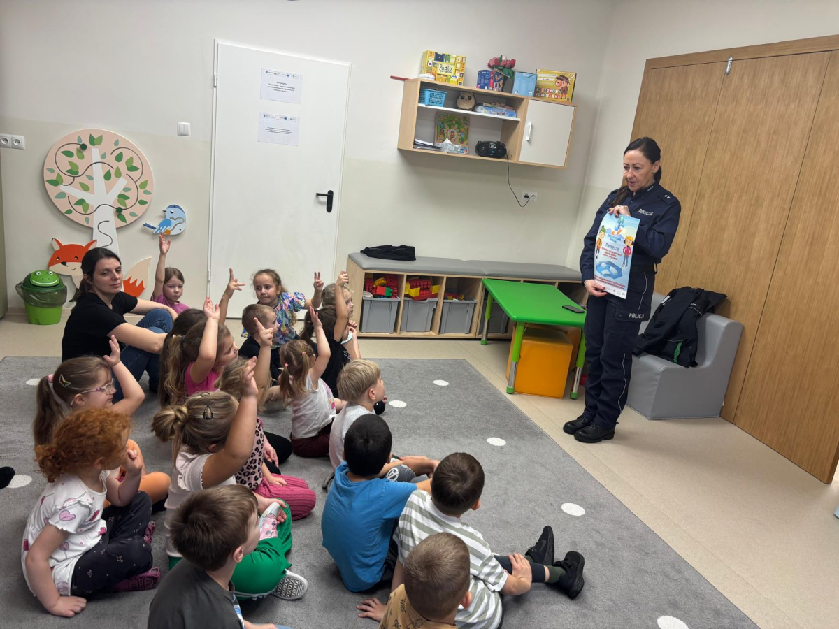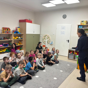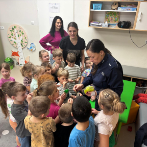 Funkcjonariusz policji w przedszkolu